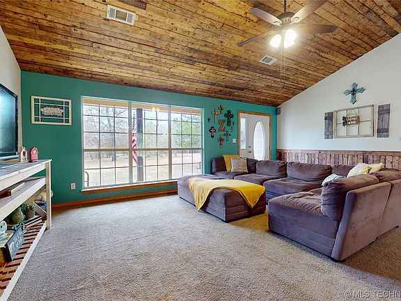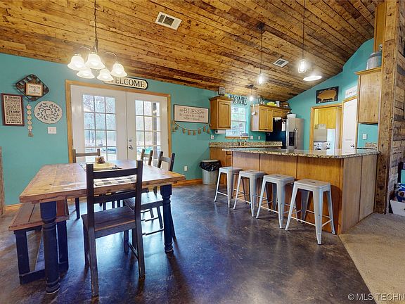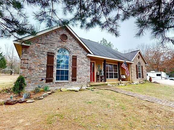 Welcome to this beautiful 3-bedroom, 2-bathroom country home situated on 18.7 acres (MOL). The open concept floor plan provokes plenty of space for comfortable living and also hosting guests. Stained concrete floors and wooded cathedral ceilings throughout the principle spaces gives the home a modern, country feel. The primary bedroom features an en suite bathroom which includes a soaking tub and separate shower. Each bedroom in the house offers their own spacious walk-in closet, providing ample storage space. In the open back yard, you will find the above-ground pool, storm cellar, tree house, and outdoor cooking area; perfect for grilling while watching the kids play. For ideal parking, there is a 36x30 concrete slab with a 10ft approach. Additionally, the 20x30 (600+ sqft) cabin located near the entry of the property makes for a great in-law suite or possible rental property. The east side of the property is bordering the Hugo Wildlife Management Area and is less than 1 mile from Hugo Lake access, making it a very ideal location for outdoor enthusiasts, especially those interested in hunting and fishing. A short 10-15 minute drive from Hugo schools and all the town amenities. Hochatown is just over a 1-hour drive away, along with OKC, Tulsa, Dallas, and Fort Smith, AR all within a 3-hour driving radius. For those who love the great outdoors, this property seems like the right place to call home. Whether it's relaxing in the peaceful country home or enjoying the outdoor conveniences, there's something for everyone.