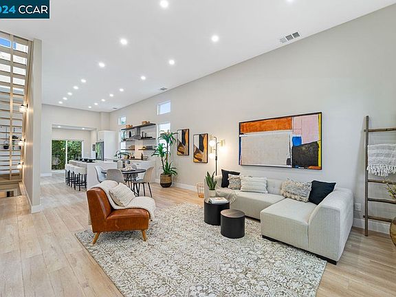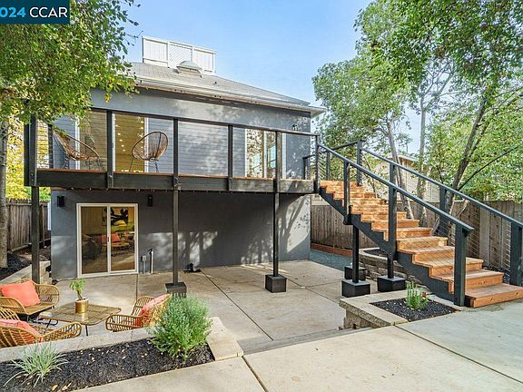 Colonial Revival from 1880 reimagined for the new millennium! While the façade pays homage to classic American architecture (portico, wooden wall cladding, paired windows, grand staircase entry), the interior is a stunning testament to thoughtful modern design. A study in light & spatiality, the main floor boasts dramatic 12 foot ceilings, a sun filtering skylight, and airy floorplan that allows you to see through the house from front to back - truly open concept living. The pièce de résistance is an iconic see-through staircase, a striking feature that ascends to the amply sized sky deck. Enjoy 360 degree panoramic views of the San Francisco Bay & the East Bay skyline atop your home. Perfect for sunbathing, watching sunsets & July 4th fireworks. A darling ADU with level-in separate entry, full kitchen & washer dryer make this a flex space for multi generational living, rental income/Airbnb or au pair quarters. The magical backyard is surrounded by a canopy of foliage offering a verdant peaceful setting. Plenty of space to dine al fresco, BBQ, or throw garden party. With a 99 Walkscore, live mere blocks from UC Berkeley, BART, Equinox, downtown shopping dining theatres & more. Take advantage of all this vibrant cerebral city has to offer.