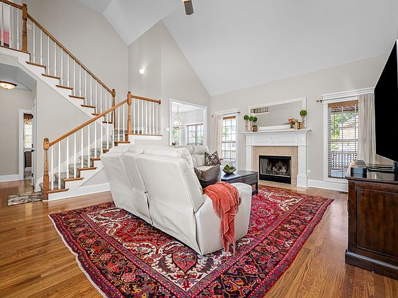 This inviting home features a two-story great room with a cozy fireplace and hardwood floors throughout the main level, including the primary suite and custom walk-in closet with built-ins. Tile in all wet areas and fresh, neutral paint downstairs. A versatile dining room doubles as an ideal office or flex space. The eat-in kitchen offers an island with extra storage and a convenient pantry. Upstairs, you’ll find three spacious bedrooms and a full bath. Step outside to a fenced backyard complete with an above-ground pool (with new pump and filter), deck with awning, and plenty of room to relax or entertain. BRAND NEW HVAC and neighborhood sidewalks. Convenient location just minutes to interstate, dining and shopping!