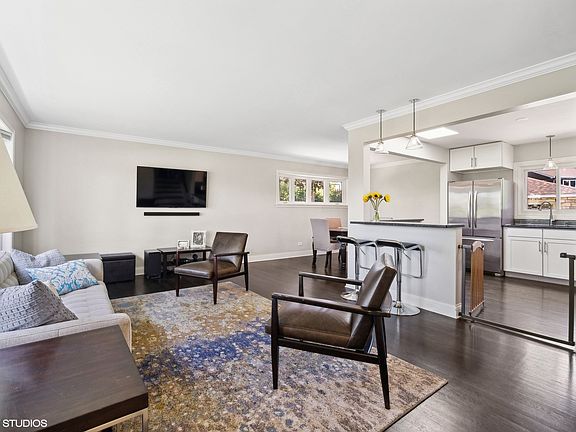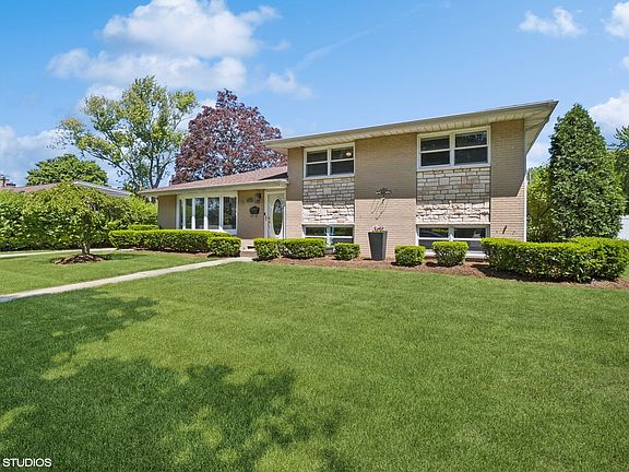 This beautifully updated and well maintained home is located on a generously sized lot on a quiet interior Glenview street. This light, airy and bright home has an open floor plan and is perfect for everyday living and gracious entertaining. The home is bathed in natural sunlight and boasts a neutral decor with hardwood floors throughout. The kitchen, overlooking the gorgeous property and deck, features white cabinetry, stainless steel appliances , subway tile backsplash, granite counters and a skylight is open to the separate dining room and the adjacent living room. The living room is a large space to entertain or just relax. Upstairs are 3 good sized bedrooms and a beautifully remodeled bath with a lovely marble topped vanity, subway tiles and linen closet. The lower level features a beautifully redone bath and a large family/ rec room. This room is perfect for exercising, play or relaxation. There is access to a large crawl space and a large utility/laundry room. This home has a tremendous amount of storage. There is an oversized two car garage, fire pit and storage shed on the property. The sought after and very convenient location of the house is close to schools, parks, shopping, restaurants, movie theaters, public transportation, expressways and more! There is nothing to do, but move right in and start making memories. This is a house that you will love to come home to!