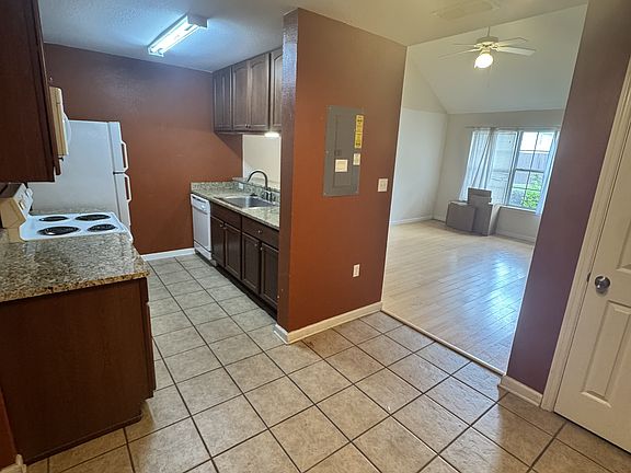 The downstairs bedroom opens to a private patio with an exterior storage closet. Washer and dryer included. Small adult pet considered with fee. No indoor smoking. Community pool and basketball court on-site.