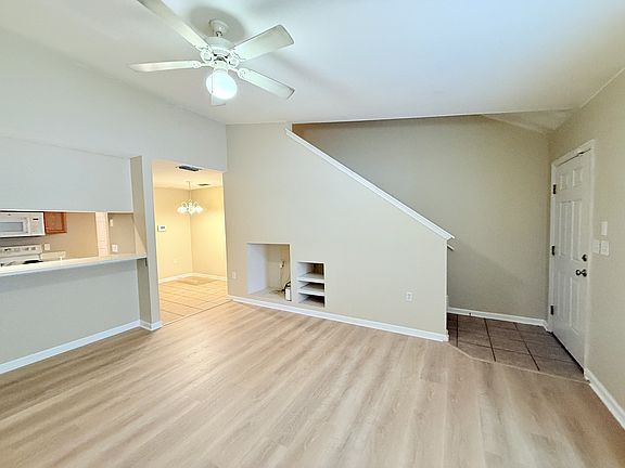 Spacious floor plan and great location to dining and shopping. 3 bedroom, 3 bathroom. Front door opens to huge living room with vaulted ceilings. Living room is overlooked by kitchen and dining area. One bedroom/bathroom located downstairs and the other 2 upstairs. Washer and dryer included.