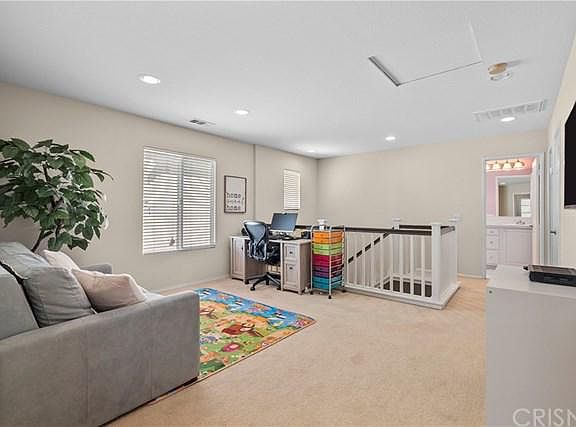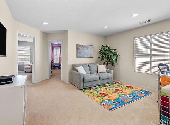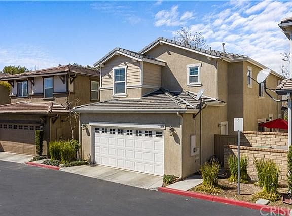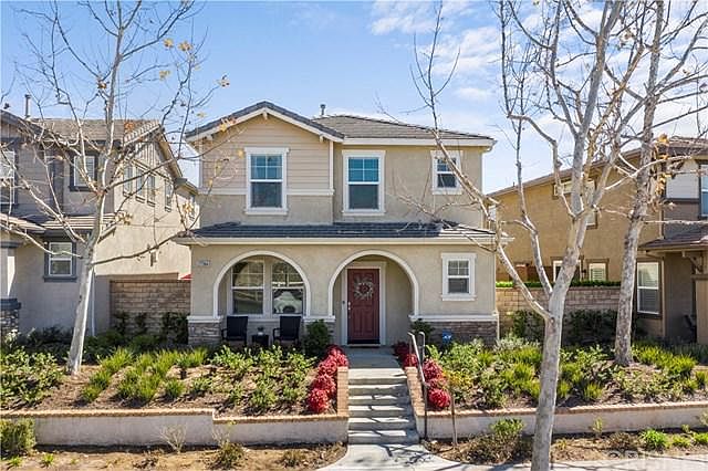 Pride of Ownership! This model perfect, Windsor home in the desirable Valencia Creekside community features 3 bedrooms, 2.5 baths, and 1,962 sq ft. Attractive curb appeal and lovely interior features make this home beautiful, inside and out. Chef's Kitchen boasts marble arabesque backsplash, granite counters, plus newly added drawer hardware and sink faucet. Direct access to the 2 car garage just off the kitchen. Open concept downstairs has a slider to the outdoor patio/yard, with low maintenance, pet friendly, artificial turf. Upstairs is light, bright & airy with 3 spacious bedrooms plus loft. Gorgeous master bedroom features a walk-in closet and fresh paint. Newly remodeled en suite master bath proudly displays dual sinks, premium Calcutta marble style quartz counters on vanity, ceramic floor tile, quartz make-up counter, overhead lighting, shower with nook, quartz trim, crackle finish subway tile, marble mosaic floor tile, and frameless glass shower surround with splash guard. The community amenities include an association pool, playground, and walking trails. This neighborhood is truly spectacular and perfect for those seeking great schools, shopping, and outdoor activities for the active lifestyle.
