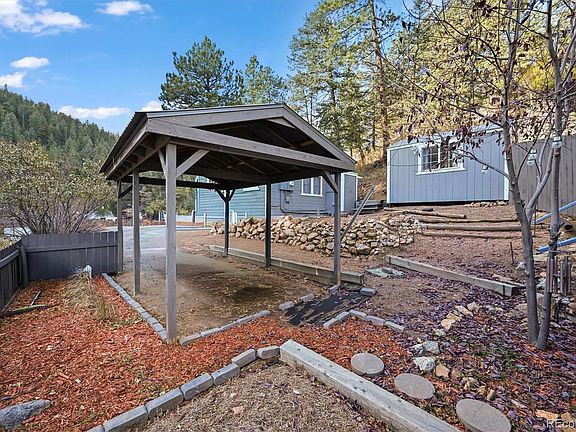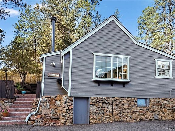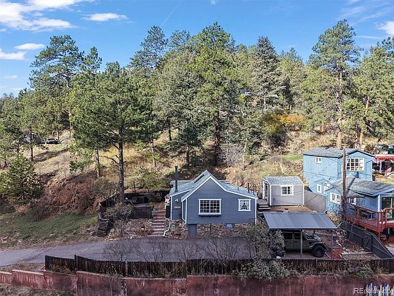 This iconic cottage in Bear Creek Canyon, perched above Bear Creek on a south facing slope, is drenched in sunlight and gives you a front row seat to the changing seasons of the Rocky Mountains as well as easy access to the amenities of town. Lovingly modernized and remodeled over the years with all the comforts of home thoughtfully designed with style and function. Enter through the courtyard with crabapple trees, lilacs and perennial beds, then through French doors into a sun dappled, slate-tiled foyer that leads to the great room with vaulted ceiling, wood beam, and a gorgeous remodeled kitchen with alder cabinets and wrought iron hardware, a large granite island with tons of storage and quality stainless appliances. The main bedroom provides ample space and storage and has a door leading to the back deck with a detached guest bedroom/yoga space/art studio. The spacious bathroom has a large soaking tub, raindrop shower head, and maple cabinets. Located just 3 minutes down the canyon from Downtown Evergreen and 25 minutes up the canyon from world-famous Red Rocks Amphitheater and Morrison, with some of the Front Range's most loved parks and trailheads up and down the canyon (Red Rocks South Entrance, Lair-O-the-Bear, Corwina and Fallon Parks) and only 30 minutes to Downtown Denver, and 1 hour east to DIA or West to Winter Park. Enjoy the courtyard under the stars and watch the moon crest the mountain ridge or stoke up the fire in the wood burning stove as falling snowflakes turn the creek and mountainside into a winter wonderland. Easy access on a county maintained, high priority plow route, paved driveway and car port. This cabin would make an incredible primary residence, artist studio, guest house or investment property. All the comforts of home with quick access to the city…yet worlds away! Furnishings negotiable. No HOA.
