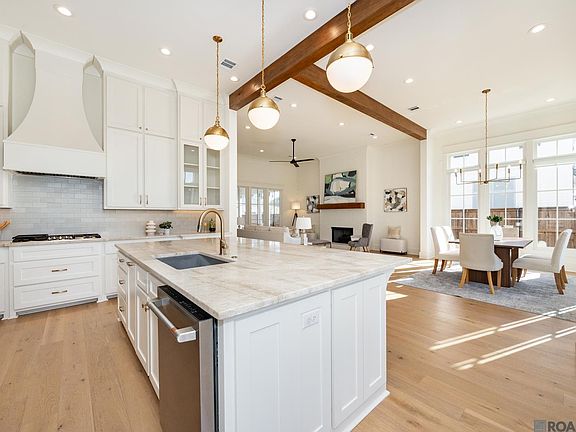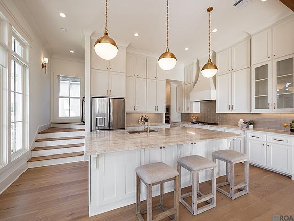 An entertainer's dream! Located 12 minutes from Tiger stadium, this home features an open living area with a wall of windows letting in plenty of natural light. The living area has exposed beams and a modern brick fireplace with access to the screened in patio with an outside kitchen. The kitchen features stainless appliances, tile backsplash, gas cooktop, and a spacious island. Primary suite features an ensuite bath with soaking tub, separate shower, large vanity with dual sinks, and a walk-in closet with built-ins that connects to the laundry room. Upstairs features a spacious loft, built-ins, computer nook, a balcony, and 3 bedrooms and 2 bathrooms. Home also features a 2-car garage with an additional third golf cart garage. Pointe Maire is just under 12 minutes away from LSU/Tiger Stadium and has an exciting community that features a neighborhood pool, clubhouse, dog park, herb garden, several parks, a promenade, and hosts many events in the public green space. The master plan combines diverse residential neighborhoods with shopping, dining, entertainment, health and wellness, learning, and a good time. Check out the Pointe Marie website! https://www.pointemarie.com/