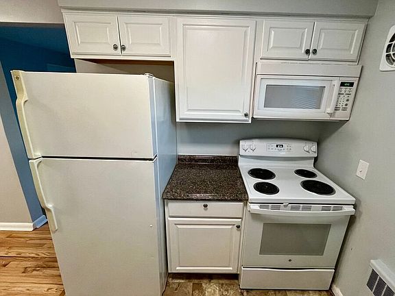 The kitchen includes a dishwasher, microwave, stove, and refrigerator