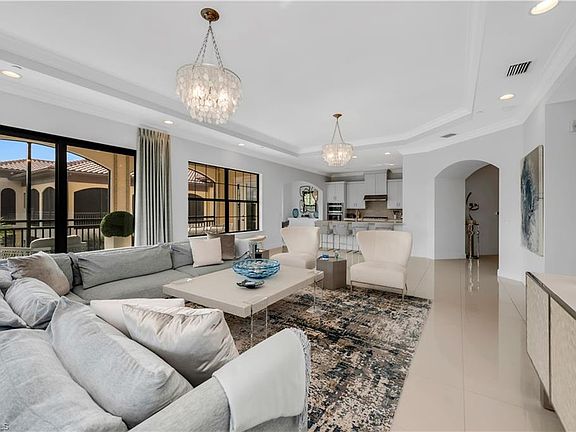 Esperanza at Tiburón – Professionally-Decorated Turnkey-Furnished Top-Floor Luxury Residence with Golf Membership Immediately Available. Experience refined Naples living in this beautifully updated and Clive Daniel-decorated penthouse-level residence in the sought-after Esperanza at Tiburón, home to the Ritz-Carlton Golf Resort and two Greg Norman–designed championship golf courses. This immaculate three-bedroom, three-and-a-half-bath end unit combines sophisticated design with serene privacy—no units above and panoramic preserve views that provide tranquility from sunrise to sunset. An inviting open-concept great room features soaring ceilings, custom millwork, high-end artwork and designer finishes throughout. The chef’s kitchen offers white cabinetry, matching quartz countertops, high-end appliances, and a spacious island perfect for casual dining or entertaining. A formal dining area flows seamlessly to the expansive screened lanai, an ideal retreat for morning coffee or relaxing evenings surrounded by a lush tropical backdrop. The primary suite serves as a private sanctuary with lanai access, a large custom-fitted walk-in closet, and a spa-inspired bath with dual vanities, soaking tub, and frameless glass shower. Two guest suites, each with its own ensuite bath and walk-in closet, ensure comfort and privacy, while the den with a private balcony provides flexible space for work or relaxation. Additional highlights include wood and tile flooring, designer lighting, plantation shutters, a private elevator that opens directly into the residence, and hurricane protection provided by impact glass windows and doors, as well as storm screens out on the patio. Under building garage with two assigned parking spaces and private storage room provide convenience and security. Offered turnkey furnished, the home showcases a curated collection of high-end pieces balancing sophistication and coastal warmth—move right in and enjoy the Tiburón lifestyle. Residents of Esperanza enjoy resort-style amenities including a tropical pool and spa, grilling area, and private clubhouse. Optional Tiburón Golf Club memberships provide access to 36 holes of world-class golf, tennis, fitness center with personal trainers, spa services, concierge, and dining. Owners also enjoy privileges at both Ritz-Carlton resorts and a private shuttle to the beach with chairs, umbrellas, and towels provided. Ideally located in North Naples, just minutes from Mercato, Waterside Shops, white-sand beaches, and downtown Naples, this top-floor corner residence offers exceptional natural light, breathtaking preserve vistas, and a rare sense of single-family privacy within one of Naples’ premier resort communities. Lives like a single-family home – penthouse privacy, resort amenities, and timeless elegance in the heart of Tiburón.