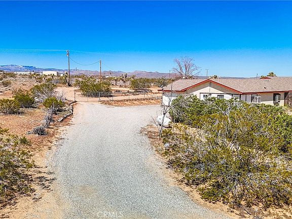This lovely 3 bedroom, 2.5 bath home is nestled on 2.27 secluded acres in Landers! As you approach, you'll love the home's long driveway that leads up to the 2 car attached garage. You'll also be thrilled to notice the 3,750 sq ft warehouse on the property that is set on a 5" concrete slab and has electric and even a sprinkler system installed! Enter the home through a generously sized bonus room that leads you into the kitchen through stylish French doors. The huge kitchen features a gas stove, tons of cabinetry for storage, a breakfast bar and plenty of counter space. The living room is spacious and features more French doors leading to the outdoor living space, plenty of lighting and a ceiling fan for your comfort. The open dining area is large and easily accessible from both the kitchen and living room spaces. You'll find each of the three bedrooms to be generously sized with plenty of closet space. The primary bedroom enjoys private French door access to the outdoor patio, and a great attached bath with dual sinks and a separate commode room with a third sink and extra storage space. Meanwhile, the conveniently located guest bath also features dual sinks. Last but not least, the outdoor living space includes a pergola-covered patio and even a hot tub for relaxing on those cool desert nights. Book a showing to see this incredible property for yourself!