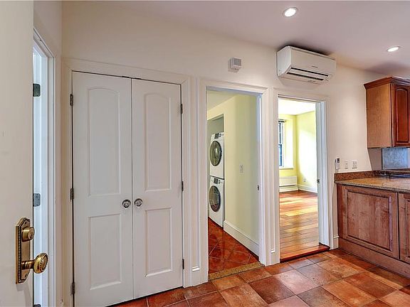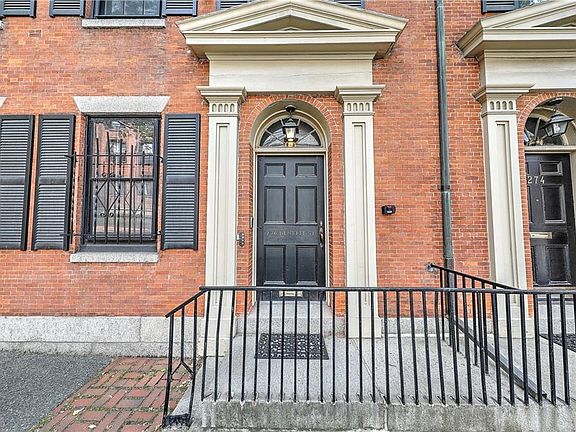 Looking for the perfect Pied A Terre? This wonderfully located flat in the Thos. P. Ives Row House fits the bill. This unit has approximately 1,000 SF of living space on the second floor of the building. Step into the entry foyer with tile floors and a coat closet. There are two bedrooms each with wood floors and a full bath with laundry. The kitchen is in the center of the unit with wood cabinetry, stone counters and stainless appliances. The dining area has an exposed brick wall and nice built-in cabinetry. Step down into the large living room with wood floors, a fireplace and a set of glass doors that open to a private balcony with views to Downtown. There is secure parking for one car behind the building. Walk to all "The Mile of History" amenities that Benefit Street has to offer. Easy access to the universities, restaurants, theater and the train. A delight.