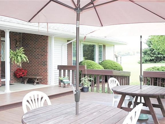 This sprawling ranch is Immaculate!Take a moment to appreciate the beauty of 8.9acres of land surrounding your new home from your covered front porch & deck or patio to the rear.Right of the entry are the bedrooms allowing privacy from the living &entertainment areas. Eat-in kitchen with picture window to enjoy views..stainless steel appliances,breakfast bar&additional area for casual dining.Thru the kitchen another area set aside for a lg. pantry & 1st floor laundry. Living rm boasts builtins, control box in built-ins manages a speaker system enabling music/TV show to be heard in the kitchen,garage& lower level. Anderson windows throughout, sliding glass doors in dining area.Lower level is huge!!Possibilities are endless..wine cellar,canning goods,a man/woman cave, exercise space, work bench...the list goes on..Updated roof, gutters, downspouts, appliances & a new water softener/filtration system.Country living at its finest. 1 1/4 hour drive to Pittsburgh makes this home truly a gem.