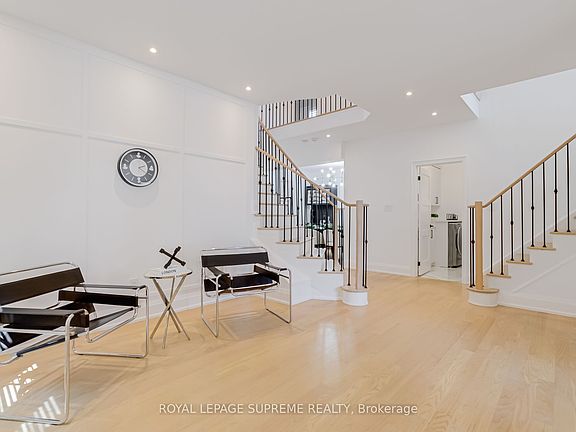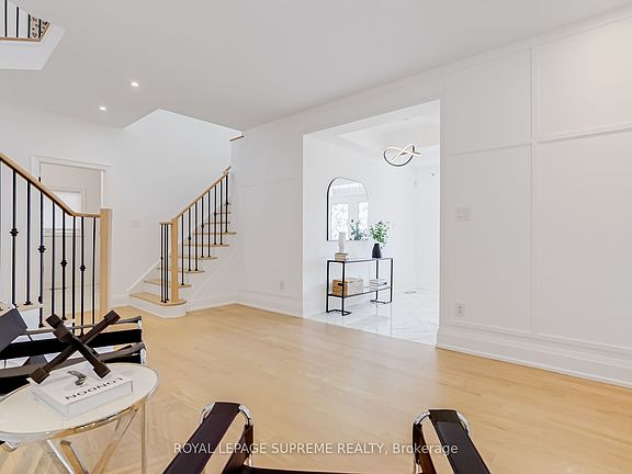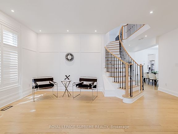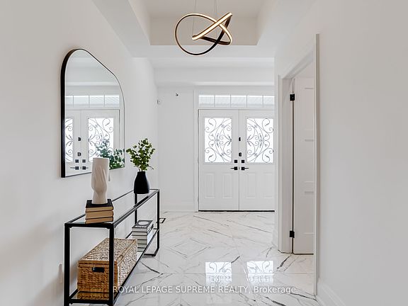 Welcome to your dream home! This beautifully renovated 4-bedroom, 4-bathroom stunner spans over 3,000 sq ft & offers the perfect blend of luxury, functionality, & modern design. Situated in a family-friendly neighborhood, the home greets you with a grand foyer featuring elegant crown molding & dual staircases setting the stage for the sophisticated interior that lies ahead. At the heart of the home is a chefs dream kitchen, outfitted with premium Samsung stainless steel appliances including a smart fridge & gas stove plus a bar fridge, built-in microwave, & custom pantry storage. The show-stopping 8-foot waterfall island with under-mount lighting creates a dramatic centerpiece, while custom wine cabinets with feature lighting in the dining area add an elevated touch. The main floor is thoughtfully designed with pot lights throughout, California shutters, & a striking custom marble entertainment wall that showcases a double-sided gas fireplace bringing warmth & style to both the living room & home office. Upstairs, the luxurious primary suite serves as a peaceful retreat, complete with a custom walk-in closet with integrated lighting & a spa-like ensuite featuring a soaker tub. The additional bedrooms offer generous space, natural light, & stylish finishes perfect for family or guests. Convenience meets design in the spacious laundry room, featuring a full-size Whirlpool washer & dryer, utility sink, & a custom mudroom bench with built-in storage & direct access to the double car garage. Step outside to your private backyard oasis, thoughtfully designed with low-maintenance turf & poured concrete, hot & cold water access, a natural gas BBQ line, & full fencing for privacy ideal for year-round entertaining. An expansive, unfinished basement awaits your personal touch, offering endless potential for customization. This meticulously upgraded home combines timeless elegance with modern comfort don't miss your opportunity to make it yours!