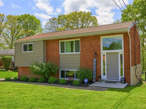 Welcome to this 3 bedroom 2 bath brick split entry situated on a cul-de-sac street! The list of updates + amenities is endless: renovated in 2021 with cosmetics, new roof, windows, appliances; 2022 new thermostat, A/C, mailbox; freshly sealed driveway 2023; and it qualifies as a SMART HOME - deadbolts including fingerprint access, lighting, ADT system, garage door opener + some outlets. Triple pane picture window in the living room affords an abundance of natural light. Hardwood flooring extends throughout the living areas. Eat-in kitchen is light and bright featuring white shaker style cabinetry, subway tile backsplash, granite counters and ss appliances. The bedrooms all have ample closet space + updated full ceramic tile bath. Daylight, walk-out lower level is complete with new hardwood flooring, game room, full bath and built-in bench/storage and leads to the beautiful back yard with wooded view. Minutes to shopping/dining, w/i 20 minutes to PIT airport, appx 30 min to Downtown.