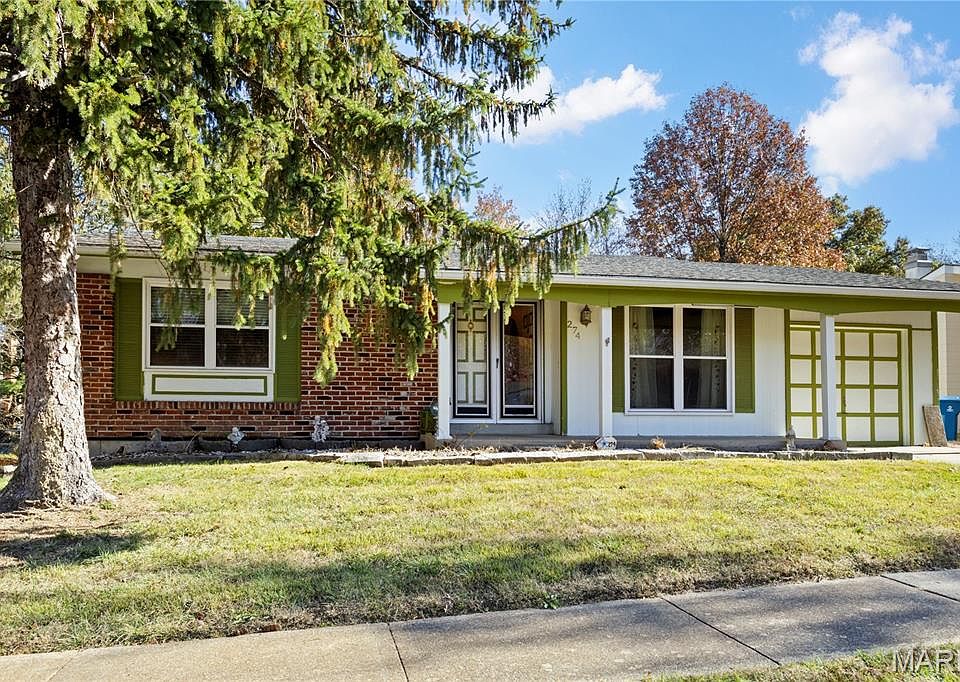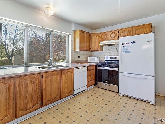 Welcome to this wonderful opportunity in the heart of Ballwin! Nestled on a quiet cul-de-sac, this 3-bedroom, 3-bath ranch offers over 1,900 sq. ft. of finished living space and a level, fenced backyard. Step inside to a spacious living room that can easily accommodate both living and dining areas. The bright kitchen features wood cabinetry, pantry storage, a large picture window overlooking the backyard, and appliances including gas stove, dishwasher, and refrigerator. Adjacent to the kitchen is a versatile dining area that can also serve as a cozy main-level family room.