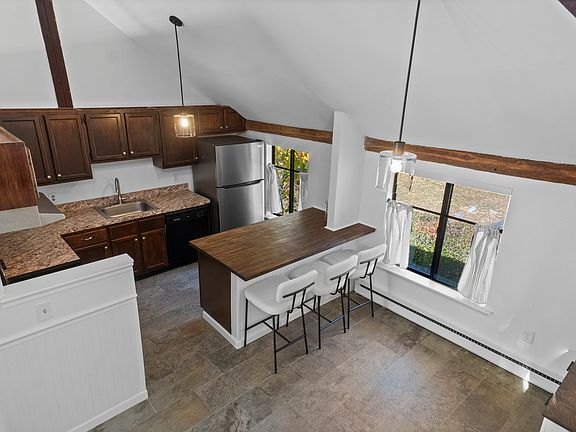 FALL INTO THIS UNIQUE GEM THIS SEASON AT GUILFORDS SOUGHT AFTER WEST RIVER COMPLEX! This historic New England embankment barn was once a dairy farm and has been meticulously renovated to modern living with wood flooring,kitchen and bath updates, yet the rustic warm vibe remains for endless decorating possibilities! This END UNIT- 2 bed, 1.5 bath townhome offers hand-hewn exposed timbers with vaulted ceilings with skylights and open floorplan. The kitchen opens up into the large dramatic livingroom with open loft perfect for extra space of your lifestyle needs. The cozy woodburning fireplace is an added feature and has been converted to electric, however can still be used for wood fires if desired. Step out onto your deck that overlooks the pool for some tranquil relaxing anytime of year. Nice storage space in the basement and in unit laundry ready to go! With walking distance to Guilford Green, restaurants, and shops, easy access to I-95 the decision to make this your home is a simple one. Don't miss out!