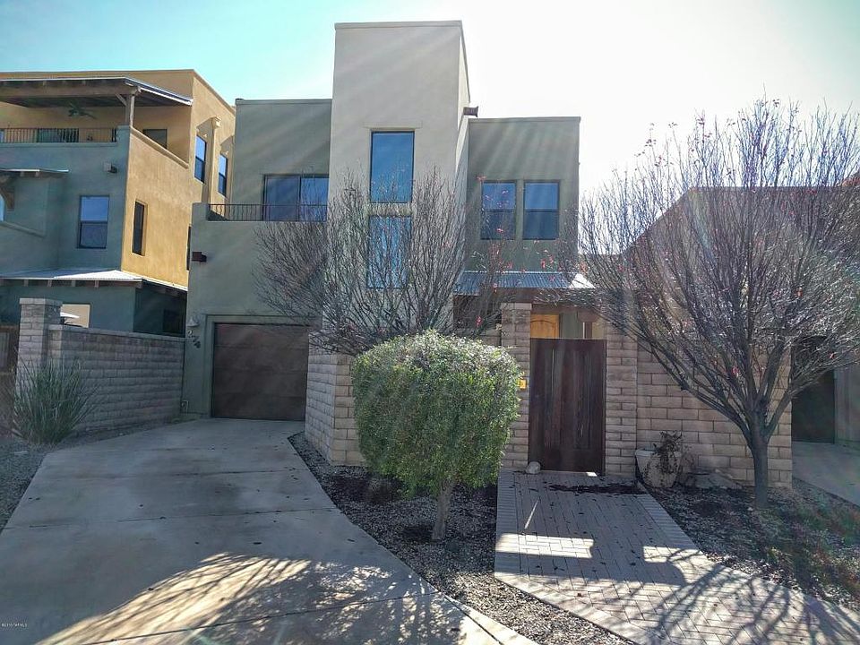 Urban living in the heart of Tucson close to shopping, hospitals, parks and restaurants in this gated community with sparkling pool, playground and dog park. Hardly lived in property features 3 bedrooms plus den with built in desks and upgrades throughout. Beautiful front courtyard with fireplace to enjoy mountain views and backyard barbecue.