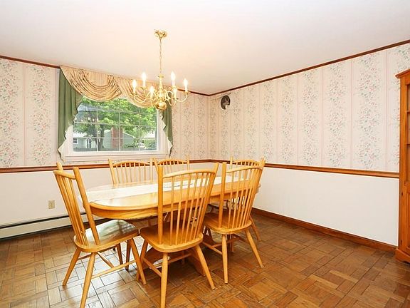 Great Value! Well maintained Colonial with spacious yard located in much desired neighborhood! The first floor boasts gleaming hardwood floors, a front to back, fireplace living room, a formal dining room,an eat-in kitchen with updated appliances, a family room with pellet stove and a sunroom overlooking the private backyard suitable for a pool. The second floor offers four family bedrooms with ample closet space, as well as a full bath. If that were not enough, the basement includes plenty of storage, office space and attached one-car garage. Convenient to public transpiration, shops, and highway access plus have peace of mind with a Home Protection Plan included for one year. All these features makes this home a must see!