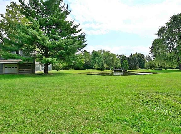 This stunning property has it all! A well maintained ranch style home and a commercial quality 2000 SF outbuilding w/radiant heat offers incredible income potential for a business, storing cars or a one of a kind workshop. The home has everything replaced, windows, doors, roof, siding. More upgrades throughout like refinished HW, central vac, bay window, tile and a huge basement. Last but not least 2.5 acres of exquisite grounds incl. a quaint bridge over a stocked pond and various berry and apple trees.