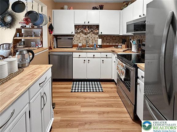 Welcome home to this beautifully maintained 2-bedroom, 1.5-bathroom condo, tucked away in the desirable Nittany Court community of Mt. Pocono. This interior unit offers the privacy and comfort of no one living above or below you, which is a rare find in condo living! Step inside to find newer carpeting, hardwood flooring, and a bright, open floor plan designed for easy living. The spacious living area flows into the dining and kitchen spaces, perfect for relaxing or entertaining. The wood burning fireplace adds a nice touch of warmth. Enjoy the convenience of an in-unit washer and dryer. Upstairs, you'll find two comfortable bedrooms with ample closet space and a full bath, while a convenient half bath serves the main level. Step outside to your private back deck, which has been freshly painted. Additional features include two dedicated parking spaces and low-maintenance living through the association, which takes care of exterior maintenance, snow removal, and lawn care. Located just minutes from shopping, dining, Mount Airy Casino, Kalahari Resort, major commuter routes, and area attractions, this home offers the best of Pocono living,comfort, convenience, and value!