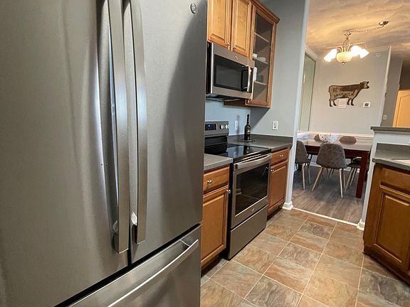 Gorgeous 2nd Floor Condo with balcony and oversized two car garage. New floors, paint and appliances throughout. Garage-CAVE is equipped with TV, cabinets and full-size fridge.