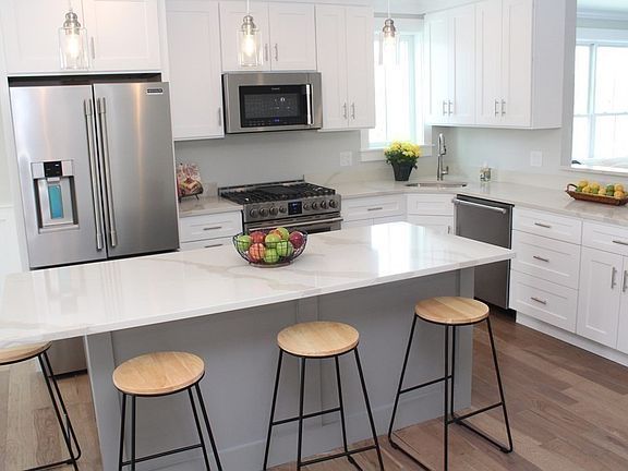 - Features: Flooring - Hardwood, Window(s) - Bay/Bow/Box, Dining Area, Countertops - Stone/Granite/Solid, Countertops - Upgraded, Kitchen Island, Cabinets - Upgraded, Cable Hookup, Open Floorplan, Recessed Lighting, Stainless Steel Appliances, Gas Stove, Lighting - Pendant, Lighting - Overhead