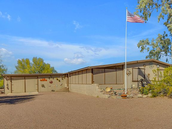 The 3-car garage has not one but TWO storage rooms, there is a separate stand alone shed, a covered and fenced horse facility and hay barn / tack room along with a 3 bedroom / 2 bath home with not one but TWO large, covered, enclosed patios that are perfect for entertaining or spending a quiet morning or evening at home enjoying our beautiful Arizona weather. The main home with a foam roof that's been sealed every 3 years, is energy efficient, spacious and comfortable offering a formal living room, a family room with attractive wood beams, vaulted ceilings, cozy fireplace and beautiful laminate wood flooring throughout.