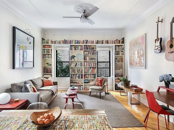 Enjoy treetop views in this lovely, wide and bright pre-war 1 bedroom,1 bath, situated on the top floor of a well-maintained 16 unit co-op. Ideally located on the border of Park Slope and Prospect Heights this home is near to Prospect Park and numerous neighborhood amenities. An excellent floorplan with two exposures and a plethora of windows provide abundant natural light. Beautifully maintained pre-war details are consistent throughout. High ceilings, crown moldings and plentiful storage is available via custom built in shelves. The primary bedroom is large enough to fit a king size bed and includes a large closet. Complete with laundry in unit.