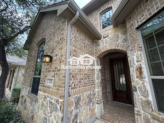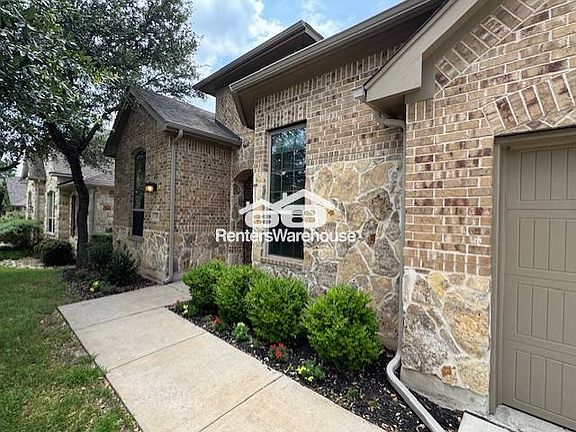 Welcome to this charming single-story home in sought after Belterra, offering a spacious layout on a private greenbelt lot in the Mesa Verde section of the neighborhood. This 4 bed, 3.5 bath home features a 3-car garage, dedicated study with built-in bookcases, 2 dining areas and excellent storage throughout. Step inside to find high ceilings and a welcoming foyer that leads to an open living area with a cozy fireplace. The study with French doors is to the left of the entry for privacy, and the large formal dining area is perfect for family gatherings or could serve as a flex space. The kitchen is the heart of the home with granite countertops, knotty alder cabinets, large eat-up island, breakfast area, gas cooking and stainless appliances. Enjoy the mix of hardwood and tile floors throughout, with carpeting in the bedrooms for added comfort. The primary suite includes a walk-in closet, double vanities, soaking tub and mud-set shower. Two spacious secondary bedrooms share a hall bath with double vanities, and the fourth bedroom has an ensuite bath, ideal for guests or multi-generational living. Outside, enjoy a private yard with a large covered patio, raised garden beds, room to play, and gated access to the greenbelt. The community hosts planned events and offers excellent amenities, including pools, splash pad, sport courts and fields, gym, walking trails, and playgrounds for your enjoyment. This home is a short walk down the street to a covered playground and trail access. Belterra Village and the new HEB are just minutes away for convenience to shopping, dining and entertainment.