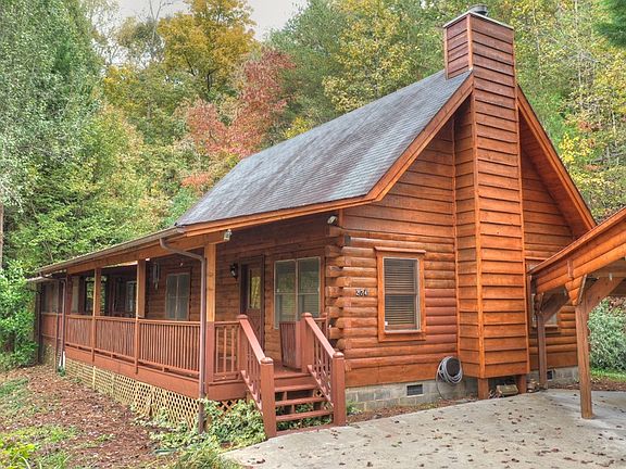 Charming LAKE FRONT CABIN perfectly situated on 1.4 private acres and only 5 minutes from town! This 3 bedroom, 2 bath log cabin makes for the perfect weekend retreat; great investment for vacation rental! You will love the full length porch overlooking TALONA LAKE; easy access to lake, comes with a dock. (Bring your fishing poles!) Cabin features great room with cathedral ceiling, stone fireplace w/gas logs, hardwood floors, kitchen has center island. Main floor bedroom has a sunroom and screened porch. Nice sized loft bedroom complete with it's own bath. 2 car carport & storage building. End of road privacy and only 1/2 mile to Hwy 515. Location! Location! Location!