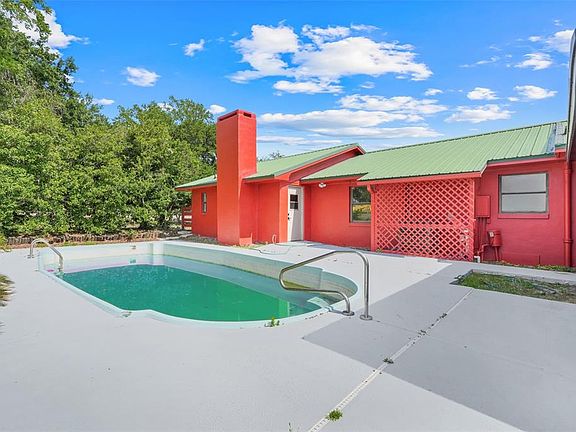 REMODELED POOL HOME ON OVER AN ACRE. Located on a sizable 1.19-acre lot, this updated 3 bedroom, 2 bath ranch-style home offers a blend of classic charm and modern renovations. The striking exterior with a durable metal roof sets the tone for the warmth and character found inside. Step into a welcoming living room featuring a red brick electric fireplace, complemented by gleaming wood flooring and fresh interior paint throughout. The heart of the home boasts refaced solid wood cabinets with new hardware, granite countertops and new Frigidaire and GE appliances, including a glass cooktop, built-in oven, dishwasher, microwave, and refrigerator. The spacious primary bedroom offers a private fireplace, an exit to the backyard, a custom-built butcher block dresser top and an en suite bathroom. Two additional bedrooms, one of which is ideal for a home office, feature new ceiling fans, custom built-ins, and ample closet space. Enjoy the outdoors from the screened-in back porch overlooking the sparkling in-ground fiberglass pool, perfect for relaxation and entertaining. A separate workshop provides additional storage and workspace, catering to hobbyists and DIY enthusiasts. Updates/enhancements include a new water heater, refurbished electrical service, fresh interior paint, new ceiling fans and lighting and a newer A/C unit. Can possibly be re-zoned to CN (commercial neighborhood).