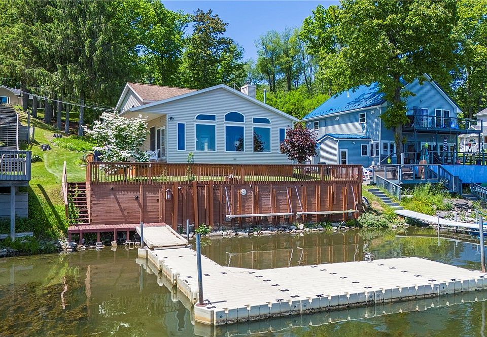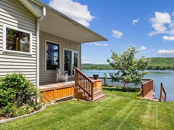 Lake Living awaits! Situated on Cayuta Lake this Year-round 4 bed 2 Bath home sits on 60ft of Frontage. Take in all the Lake has to offer from the Great room with Cathedral ceilings and panoramic views of the lake. Nice open feel to the Kitchen and living room with first floor laundry. Have your morning coffee on the covered side porch looking out to the lake with your Floating dock all just a few steps away. Plenty of parking available and lots of storage for all you Lake Toys along with Forced Air heat and A/C this home has it all. The possibilities are endless with this well-maintained Lake Home!
