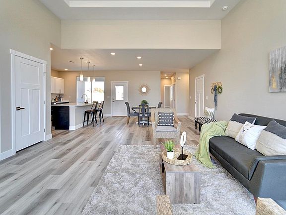 This new construction home has the WOW Factor with a 12' tray ceiling in the living room, 8' quartz island in the kitchen, central air conditioning, and a covered patio with no rear neighbors. The open floor plan features 3 beds, 2 baths, and 1631 sq/ft. The kitchen boasts Whirlpool stainless steel appliances, large walk-in pantry, quartz countertops, and a sleek gray color scheme. The master suite is fitted with a 4-piece bathroom including a tiled shower, double vanity, and large walk-in closet with custom shelving. Outside enjoy the covered patio, fenced backyard, front landscaping, stucco siding, and a 2-car garage. HOA provides high speed fiber optic internet, trash/recycling service, irrigation, and maintenance of the front yard for only $140/month. Just a short 5 minute drive to Downtown Grand Junction, Las Colonias park, grocery shopping, and the Mesa County fairgrounds.