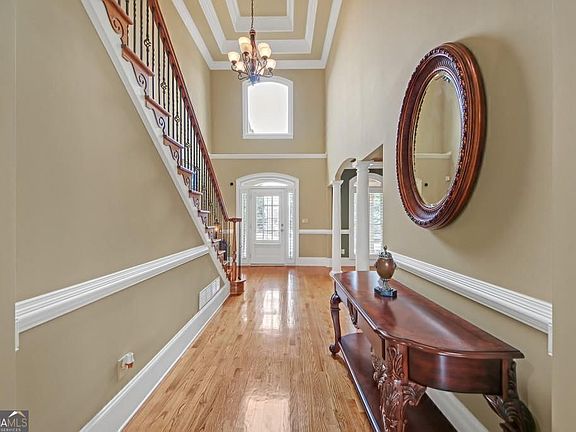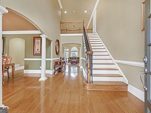 Welcome to this beautifully maintained, original-owner home, ideally located on a peaceful cul-de-sac. Offering five spacious bedrooms and 3.5 bathrooms, this home provides exceptional comfort and style. As you enter, you'll be captivated by elegant architectural details that enhance the warm and inviting ambiance. The formal dining room, designed to seat eight, is adorned with graceful columns, while the formal living room impresses with towering ceilings and abundant natural light. At the heart of the home, the open-concept kitchen boasts granite countertops, a center island, extensive cabinetry, and a walk-in pantry. The adjacent breakfast nook overlooks the expansive great room, which is filled with light and features soaring ceilings. From here, step outside to the private patio, perfect for outdoor gatherings or quiet relaxation in the spacious backyard. The main-level Owner's Suite is a luxurious retreat, complete with a sitting area, cozy fireplace, his-and-hers closets, and a spa-like bath featuring dual vanities, a soaking tub, and a walk-in shower. This level also includes a laundry room and powder room for added convenience. Dual staircases one near the foyer and another from the great room lead to the upper level, where four generously sized bedrooms share two well-appointed bathrooms. The unfinished basement provides an exciting opportunity for customization, whether you dream of additional living areas, a home theater, or a fitness space. Located in a top-rated school district, this home is close to shopping, dining, parks, and medical facilities, with easy access to US-78, I-85, and 316. Residents also enjoy a thriving swim and tennis community. Don't miss this incredible opportunity to own a home that blends elegance, comfort, and convenience. Welcome Home!