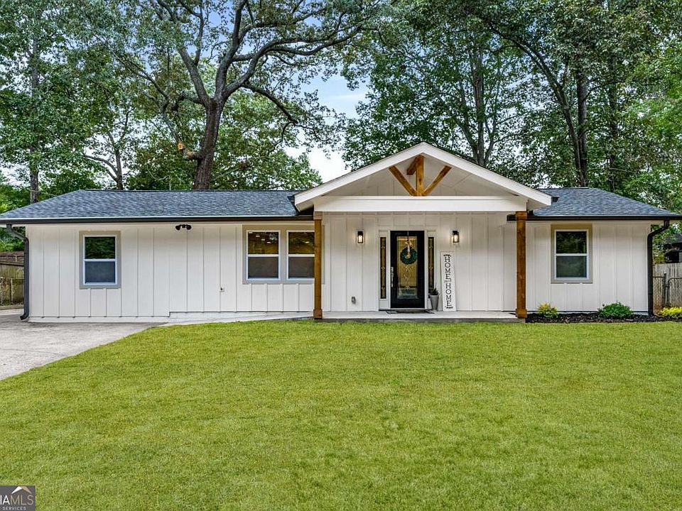 Step inside this fully renovated 4-bedroom, 2-bathroom home in the heart of Smyrna, where modern design meets timeless charm. Every detail has been thoughtfully transformed, starting with the exterior featuring new board-and-batten siding, fresh windows, a welcoming front gable accented with cedar posts, a brand-new roof, and a convenient ramp for easy access. Updated electrical and plumbing bring peace of mind, ensuring this home is as functional as it is beautiful. The heart of the home is the spacious open-concept kitchen designed for both everyday living and entertaining. Showcasing a striking two-tone design, it features a white oak island with quartz countertops, complemented by crisp white cabinetry with brass hardware. A pot filler adds convenience, while the hidden walk-in pantry with custom shelving provides an unexpected touch of luxury. The oversized primary suite offers a true retreat, complete with a spa-like bathroom featuring double vanities, a freestanding soaking tub, and a custom shower with dual showerheads. The walk-in closet includes built-in shelving for effortless organization. Three additional bedrooms share a beautifully updated bathroom, providing comfort for family or guests. Additional highlights include a covered carport, a level fenced backyard with a storage shed, a front-entry ramp, and thoughtful finishes throughout. With all renovations completed, this under-2,000-sq-ft home is move-in ready and designed for today's lifestyle. Located just off South Cobb Drive, you're minutes from grocery stores, parks, and everyday conveniences. The Silver Comet Trail and Smyrna Village are nearby for outdoor recreation and community events, and Downtown Marietta is just a short drive away. Enjoy the perfect combination of a fully renovated home and a central Smyrna location.