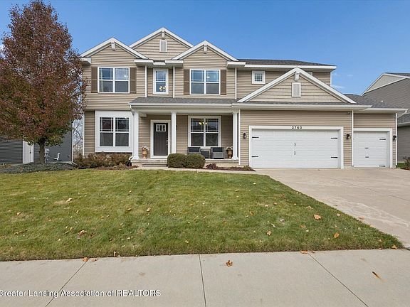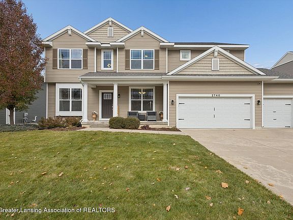 Welcome to 2740 Lupine Drive, a beautifully designed 4 bedroom, 3.5 bath home in the heart of Okemos, minutes from top-rated schools. Covered front porch. Over 4,272 sqft living space. Abundance of engineered Mohawk hardwood flooring. Grand living spaces w/soaring ceilings & abundant natural light. Inviting great room featuring a gas fireplace open to the kitchen. Gourmet kitchen w/granite counters, walk-in pantry, and walk-in closet off the garage. Private office w/elegant glass French doors. 3 car garage for ample storage & parking. Luxury primary suite w/walk-in closet & spa-like bath. Serene pond views from the backyard. Shed included. Finished lower level w/full bath offering flexible space for recreation & guests. 2nd floor loft perfect for study, play or relaxation. This home combines modern finishes w/thoughtful design offering the perfect blend of comfort & sophistication. Don't miss the opportunity to capture & enjoy one of Okemos' most desirable neighborhoods! You are going to love it.