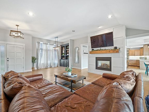 Experience the ultimate lakefront living at this one-of-a-kind retreat in Barefoot Bay! Perfectly positioned along the water, this rare property is one of only 50 exclusive homes on the lake and offers a lifestyle that feels more like a resort than a residence. Step outside and soak in the unmatched amenities: a private dock with boat slip, heated and cooled inground pool, sport court, and sandy beach all designed for year-round enjoyment. Whether it’s an afternoon on the lake or an evening around the gazebo with a wood-burning fireplace, every detail invites you to unwind and entertain in style. Inside, sophistication meets comfort with an open-concept layout framed by expansive windows and lake views. The gourmet kitchen impresses with Fisher & Paykel appliances, marble countertops, a spacious island with beverage fridge, and a two-way fireplace that connects seamlessly to the living area-- creating an inviting space for gatherings both large and small. Just off the kitchen, you’ll find a convenient half bath, laundry room, and garage access with a unique two-way third stall, perfect for storing lake gear or parking your boat. The primary suite offers a serene escape, featuring deck access, breathtaking water views, and a spa-inspired ensuite with double vanities, a tiled walk-in shower, and a generous walk-in closet. Downstairs, the walkout basement continues the theme of effortless entertaining with a wet bar, large family room, three additional bedrooms, and a full bath-- perfect for hosting guests or weekend getaways. Outdoors, every inch of the property is thoughtfully designed and beautifully maintained with lush landscaping, a sprinkler system, and an irrigation well to keep it picture-perfect all season long. From sunrise on the dock to sunset by the fire, this home blends luxury, leisure, and lake life in a way that few others can match. Welcome home to Barefoot Bay!