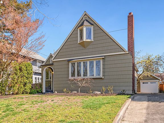 Perched on a tree-lined, quiet street in the Alameda/Beaumont area, this storybook English cottage is waiting to welcome you home. Beautifully maintained and loaded with charm and elegant period details, including arched doorways, original refinished fir flooring upstairs, picture rails and stunning leaded windows to take in the tree-top views. Spacious light-filled living room with beautiful custom tile on the fireplace matching that in the entryway. Formal dining room off the living area leads to the gorgeous and updated kitchen with granite countertops and custom cabinetry, stepping down to the breakfast nook with french doors opening to to your private, fully enclosed backyard with a covered patio to enjoy dining alfresco all year round.Rare, beautiful, main floor primary bedroom with walk-in closet and exquisite ensuite bathroom. Upstairs you'll find two light-filled bedrooms with a shared full bath. Freshly painted throughout and featuring thoughtful amenities and fixtures; with new flooring on the main and lower levels. Don't miss the finished lower level offering endless potential with loads of storage, a bonus room, flex space to relax with a movie, home gym or creative space. Great neighborhood schools, easy commute access and nearby shops, restaurants and conveniences. Detached garage for parking or additional storage and private driveway. An absolute stunner.