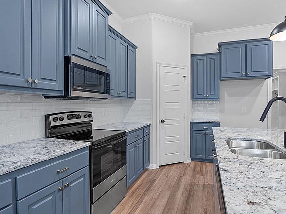 Another gorgeous home built by Sidar Builders! The home boasts an open kitchen with custom cabinets, granite countertops, stainless appliances, faux wood blinds, and pendant lighting. Open living/family room, abundant natural light, vinyl wood plank flooring, and oversized covered patio. Primary suite with crown molding and large windows that provide ample natural light. Primary bath with large shower, soaking tub, granite vanity, and large walk-in closet with built-in shelves. Three other bedrooms with ample closet space and built-in storage share 2nd full bathroom with granite vanities and tub/shower combo. The home also has a half-bath with granite vanity. Home features sprinkler system, privacy fence, and vinyl Low-E windows.