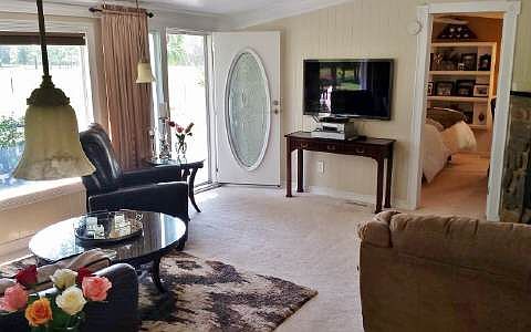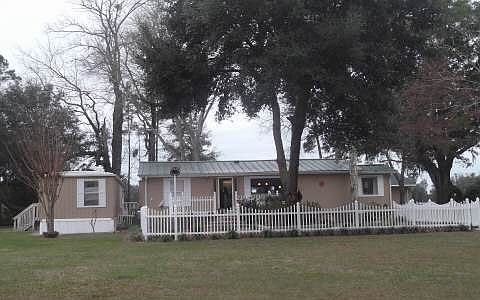 Beautiful drive up the pine tree lined drive to this completely fenced 12.32 acre property with automatic gated entry offering a park-like setting featuring a 2BR/2BA, 1064sf double wide mobile home that's been completely remodeled inside & out making it look and act like a site built home complete with brick foundation, brick steps to front entry, open back deck with vinyl railings, front & back yards vinyl fenced with lots of beautiful landscaping, security lights, cross fenced pasture with sprinklers & pens for chickens or other animals. Inside you'll find lots of large windows throughout providing plenty of natural light, wainscoting & chair rails in the bedrooms & baths, bay window in dining room with lovely view to detached garage & back yard, crown molding throughout & vaulted ceilings. The living room features a large picture window & electric fireplace. The kitchen features red wood flooring, custom cabinets, gas range, tiled back splash, spot for full size stackable washer/dryer, pantry and overlooks the living room. The master suite also has lots of windows, bamboo flooring & bath has marble flooring, tile walk-in shower & granite counter. The guest bedroom has a built-in bookshelf. Guest bath has tiled shower/tub combo & decorative vessel sink. Off the back deck is the painted walkway with trellis to the detached 2 car garage with power. In addition to all this, the home's metal roof was put on in 2010 & the foundation has been retrofitted to current hurricane standards. This truly is a very pretty piece of property that you MUST see to appreciate, so drive by & take a look TODAY!
