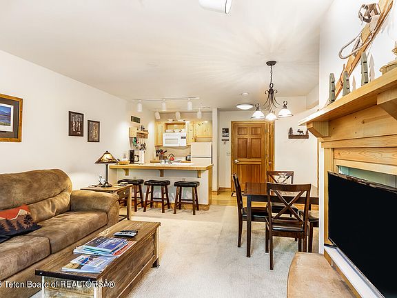 Turnkey Condo in Teton Creek Resort. Experience mountain living in this 1BR/1BA condo located just minutes from the renowned Grand Targhee Resort and charming Driggs, Idaho on Ski Hill Road. Step inside to find a cozy retreat with a fireplace. The condo is tastefully furnished. With excellent short-term rental potential, this property presents an incredible opportunity for generating income while you're not enjoying it. Indulge in the amenities offered onsite, including relaxing hot tubs, a convenient storage locker, and a shuttle stop providing easy access to the Grand Targhee Resort. Positioned as a desirable corner unit on the second level, this condo boasts a south-facing deck that offers breathtaking views of the surrounding natural beauty.
