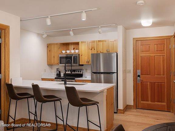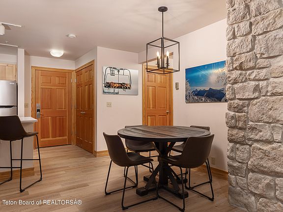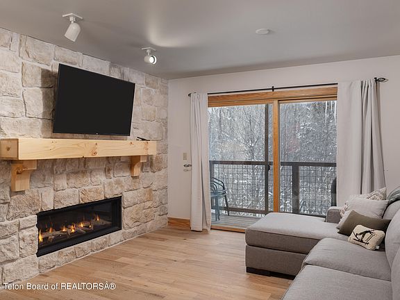 See this unique Teton Creek Resort unit with newly renovated contemporary design on the upper floor of the coveted private Shoshone building. A few of the updates include white oak hardwood floors, modern gas linear stone fireplace, marbled quartz counter tops, and quality furnishings with local artwork on freshly painted walls. This development along Teton Creek offers prime location for Grand Targhee Resort, National Forest, and downtown Driggs access with ease. HOA dues include water/sewer, garbage, snow removal, and common area maintenance; as well as access to private community hot tubs, gym, and ski locker. This turn-key unit is ready for year-round use at closing! Condo is in the rental pool, inquire about existing reservations.