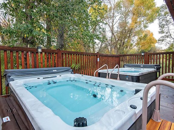 Community hot tubPropane flame fireplacePrivate patioTwo master suitesIn-unit washer and dryerAll-new smart tvsElectric bbq grill