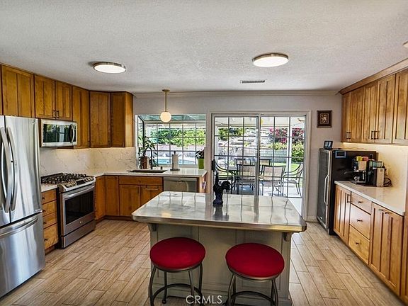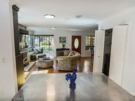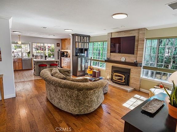 Single Story Pool Home with Smart Home features throughout! 3 Bedroom, 2 Bathroom, 2-Car Garage plus Covered RV Parking for a small RV or Boat. Owned solar electric system including Tesla Power wall and 220 vehicle charging outlet. Lushly landscaped front yard with Flagstone hardscape, cozy Front Porch and custom front door. Wood flooring starts at the Entry and runs throughout nearly the entire home. Living Room with cozy wood burning stove fireplace, surround sound and custom built in media cabinet. Living Room is open to the Dining Room, perfect for entertaining! Kitchen features Quartz counters, Island, Gas Range, soft-close drawers and cabinets, garden window and sliding glass doors to the Patio. Primary Bedroom with custom built closet and storage system in addition to the mirrored door closet. Primary Bath with walk-in shower and ample storage cabinets. Bedroom Two, currently used as an office and Bedroom Three, both have mirrored door closets. Updated Full Guest Bathroom conveniently located off hall. Entertainer's Backyard with covered patio, Swimming Pool, Spa, with solar pre-water heating system.. Gas line for a BBQ. Lushly landscaped all around. No rear neighbors. Two Car garage with Tesla Power Bank and Electric Vehicle 220v charging outlet, tankless water heater, also has an epoxy finish floor. Amenities Galore: Fig tree in Front yard, Smart Home features, custom built-ins, Surround sound speaker system. Murphy Bed, custom media cabinet, crown molding, rain gutters and downspouts and so much more. Move in ready, don't Miss out! Contact your agent to schedule showings.
