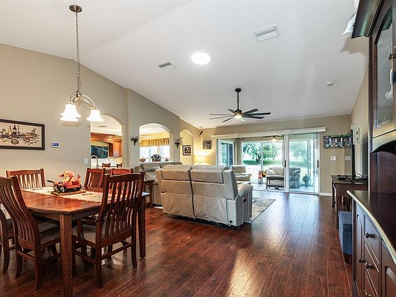 FROM THE MOMENT YOU WALK THRU THE FRONT DOOR AND INTO THE FORMAL FOYER YOU ARE GOING TO KNOW THIS IS THE ONE. CUSTOM MONARCH MODEL HOME WITH ALL OF THE UPGRADES YOU WOULD EXPECT. ENGINEERED FLOORING, OPEN CONCEPT, A DREAM KITCHEN WITH GRANITE COUNTERS, UPGRADED CABINETRY WITH DEEP PULL OUT DRAWERS, TASTEFUL BACKSPLASH, STAINLESS STEEL APPLIANCES, DOUBLE PANTRY, AND A SOLAR TUBE FOR THE FLORIDA SUN TO SHINE IN. THE PRIMARY BEDROOM HAS SLIDING GLASS DOORS TO THE OUTDOOR SPACE, AND OVERSIZED CLOSET. PRIMARY BATH HAS A WALK IN SHOWER. THERE ARE 2 GUEST BEDROOMS FOR FAMILY AND FRIENDS TO VISIT WITH A FULL BATH. THERE IS ALSO A HALF BATH JUST OFF THE ENTRANCE TO THE HOUSE. THE OUTDOOR ENCLOSED SPACE HAS FLOOR TO CEILING WINDOWS. A SEPARATE BIRDCAGE OFFERS ANOTHER SPACE TO ENTERTAIN. WITH A SOUTH EXPOSURE YOU CAN ENJOY THE FRONT PORCH LOOKING AT THE WATER OR THE PRIVATE BACK YARD IN THE MORNING OR EVENING. WHOLE HOUSE GENERATOR, NEW ROOF BEING INSTALLED 2025 HVAC 2023. LANDSCAPE CURBING AND ROCK BEDS FOR LESS MAINTENANCE.THE GARAGE IS EXTENDED FOR A GOLF CART, WORK AREA OR STORAGE. THE GARAGE FLOOR HAS BEEN COATED AND THE DRIVEWAY PAINTED. ALL OF THIS IN ONE OF CENTRAL FLORIDA'S PREMIER 55+ COMMUNITIES. LEGACY OF LEESBURG. LEGACY IS KNOWN FOR ITS MILES OF WALKING TRAILS, AND CONSERVATION AREA. THE HOA INCLUDES CABLE, INTERNET, GRASS CUTTING. RV AND BOAT STORAGE ON SITE. PICKLEBALL, TENNIS, BOCCE AND A RESORT STYLE POOL. COME SEE WHY SO MANY CALL LEGACY HOME.