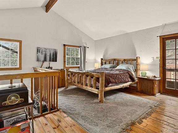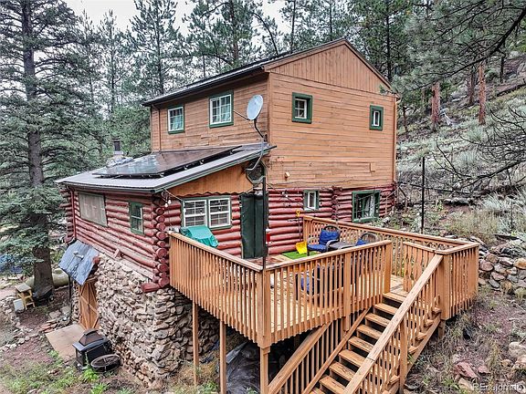 Historic Sphinx Park Cabin with Updated Comforts. Nestled among towering pines and dramatic rock outcroppings of Buffalo Creek, this enchanting 1905 log cabin—originally the Buffalo Creek carriage house— offers the perfect Colorado mountain retreat. Blending historic character with thoughtful updates, the home provides a warm, inviting escape just minutes from Highway 285 and the charm of Buffalo Creek. Inside, you’ll find classic log walls, wood floors, and cozy living spaces accented by stonework and a wood-burning stove. The updated kitchen balances rustic decor with modern function, featuring a vintage-inspired range, butcher block counters, and open shelving. The open dining and living areas invite connection, with multiple windows framing the surrounding forest. Upstairs, the loft-style primary suite boasts vaulted ceilings, a private deck, and an abundance of natural light. An additional bedroom with a charming built-in platform bed offers flexibility for guests, a home office, or rental use. Bathrooms include both a custom soaking tub and a classic clawfoot tub, adding to the home’s historic charm. Step outside to one of the multiple decks where you can sip morning coffee, entertain family and friends, or stargaze beneath Colorado’s dark skies. Solar panels, a durable metal roof, and storage areas beneath the home provide both efficiency and practicality. Adventure is always close by—hike, bike, or climb in the nearby trails, fish the South Platte River, take a spontaneous dip at the Chutes, or enjoy live music at the Bucksnort Saloon. Fully furnished and move-in ready, this historic cabin is ideal as a year-round residence, weekend escape, or Airbnb investment.