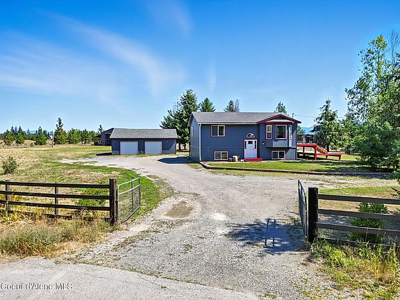 Welcome to your equestrian dream with mountain views! This 5-acre horse property is thoughtfully designed for the serious rider and outdoor lifestyle enthusiast. Featuring seven horse paddocks with shelters, a professional riding arena, and a round pen, you will find everything you need to care for and train your horses in style. For the gardener there is a well designed garden and large chicken coop. The charming, meticulously maintained home provides 4 bedrooms, 2 bathrooms, and 2 living spaces providing room for everyone. A custom-built deck invites you to relax with your morning coffee, entertain guests, or soak in the hot tub after a day in the saddle. A large shop offers ample room for tack, equipment, or hobbies, ensuring both functionality and flexibility. All of this is set in a convenient location, with easy access to lakes, camping, and Silverwood. Discover the perfect blend of comfort, convenience, and equestrian excellence!