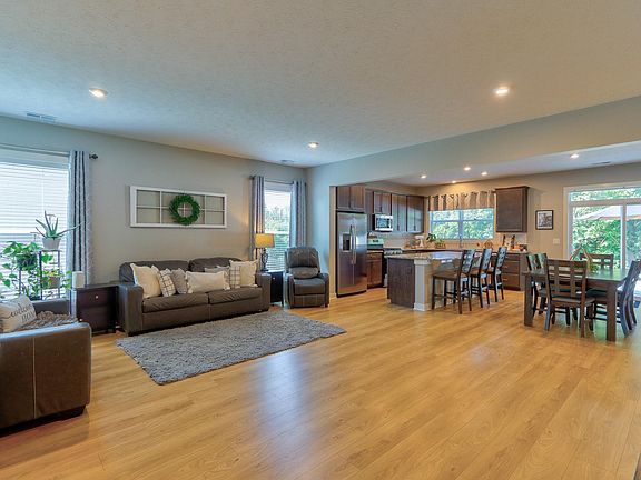 This stunning two-story contemporary craftsman features 4 bedrooms and 2.5 bathrooms with thoughtful updates and spacious living throughout, located on Evansville’s West Side. The open concept main level includes a spacious living room filled with natural light, a well-appointed kitchen with stainless steel appliances, stone countertops, a walk-in pantry, and an island with seating, plus a formal dining space. Extras like 9ft ceilings, a welcoming foyer, main floor laundry, and a dedicated storage/utility room add convenience. The primary bedroom is located on the main floor and features a full ensuite and walk-in closet, while three additional bedrooms and a second living space are upstairs along with another full bath. Outside, enjoy the fenced backyard with an open patio, a covered front porch, and attractive landscaping. The attached two-car garage, curb appeal, and plenty of storage throughout complete the package.