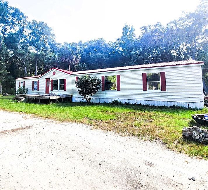Private & peaceful 4/2 property nestled on 3.9 acres FULLY FENCED. Investors bring your TLC. This spacious property is a must see! Roof replaced in 2021. Split floor plan home with so much to offer including a fireplace, two walk-in showers, large Florida room with a huge deck in the back w/a covered pavilion, great for hosting! this home also boasts a huge detached workshop w/ electricity, carport, RV hookup & Generac generator. Add drywall, flooring, skirting, decking and painting to your list of repairs. Bring your tenants or simply enjoy this home for yourself.