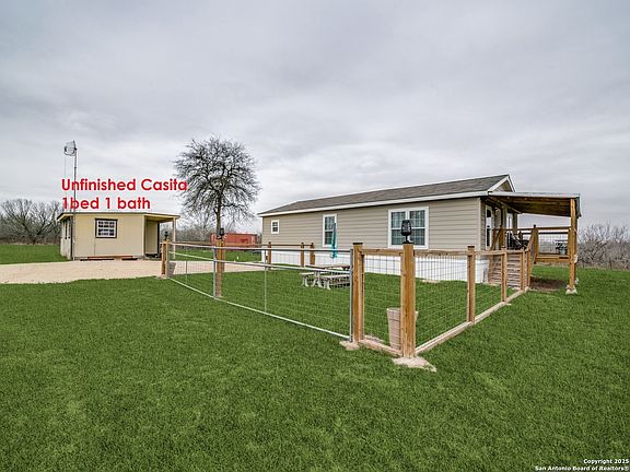 Secluded 9.3-Acre Retreat in Stockdale, TX - Move-In Ready with Endless Possibilities along with seller financing! Tucked away in the peaceful countryside of Stockdale, TX, this secluded 9.3-acre property offers the perfect blend of comfort, convenience, and potential. Whether you're looking for a private getaway, a full-time residence, or an investment opportunity, this move-in-ready home is packed with features that make it truly unique. The 2-bedroom, 2-bathroom home boasts an open floor plan, creating a spacious and inviting atmosphere. Natural light floods the living area, highlighting the seamless flow between the kitchen, dining, and living spaces. The home comes fully furnished, including newer appliances, a washer and dryer, comfortable beds, and stylish furniture-making it easy to settle in from day one. No extra work is needed; simply bring your belongings and start enjoying country living. Beyond the main home, the property has been thoughtfully upgraded with essential infrastructure. A 4-inch water line has been installed, ensuring a reliable and consistent water supply. A new aerobic septic system provides efficiency and easy maintenance, while an on-site well fills the stock tank, making it ideal for livestock or simply enjoying the scenic landscape. These upgrades provide both convenience and sustainability, setting this property apart from the rest. Adding even more potential, a 1-bedroom, 1-bath casita sits on the property, ready to be finished to your liking. This space could serve as a guest house, rental unit, home office, or private retreat. With the essential structure in place, you have the flexibility to customize it however you see fit. For those who love the RV lifestyle or need additional accommodations, this property includes a dedicated RV/camper pad with full hookups-electric, water, and septic. Whether you have guests visiting or you're considering rental opportunities, this feature makes the land even more versatile. With ample space to expand, you can build additional structures, start a small ranch, or create a unique outdoor oasis tailored to your lifestyle. Surrounded by unrestricted acreage, this property is a dream for outdoor enthusiasts and nature lovers. Deer feeders are already set up, attracting whitetail deer and other wildlife, making it an excellent spot for hunting or wildlife watching. The land offers plenty of space for hiking, ATV trails, horseback riding, or even starting a homestead. Imagine spending your mornings sipping coffee on the porch while watching deer roam freely, then exploring your private land in the afternoon is true Texas country living at its finest. While this retreat offers the peace and privacy of rural living, it remains conveniently located near major highways and amenities. Stockdale offers small-town charm with local shops, restaurants, and schools, while Seguin provides additional shopping, dining, and healthcare options just a short drive away. For those needing access to city conveniences, San Antonio is less than an hour's drive, offering endless entertainment, cultural attractions, and an international airport. With its prime location, move-in-ready home, guest casita, RV hookups, and abundant outdoor space, this property offers endless possibilities. Whether you're looking for a weekend escape, an investment opportunity, or a place to create your dream homestead, this 9.3-acre retreat is ready for you. Don't miss out-schedule a private tour today and experience everything this incredible property has to offer!