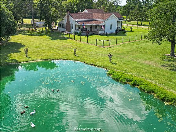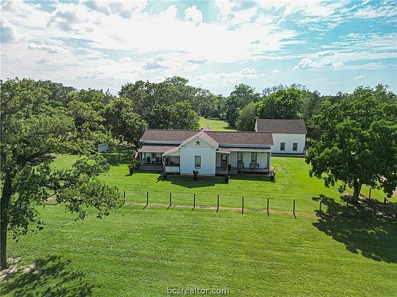 Unique 1920's farmhouse replica situated on 6.10 unrestricted acres just minutes from Hwy 290! This property features a picturesque large, stocked pond, a 25'X30' barn & a 2-story 2 car garage w/bathroom! Upon entry into the home, you will be met w/reclaimed wood flooring, a spacious living room w/a beautiful woodburning fireplace, & a dining room with plenty of space to entertain! The large gourmet kitchen offers commercial grade appliances, tons of cabinet space, antique brick flooring & a tin ceiling giving it the perfect blend of modern convenience & rustic charm! The first spacious bedroom boasts a walk-in closet & an ensuite bath with the soaking tub of your dreams, while the second features a walk-in closet & an ensuite bath w/a gorgeous walk-in shower! Take in the sun pool side or spend your evenings relaxing in the hot tub! Enjoy the scenic country views while riding your horses through 6 acres of lush green space! Electric gated entry for optimal privacy! Tour this gem today!