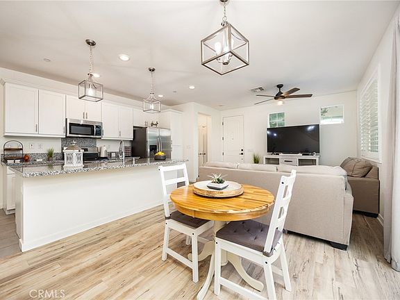 * BONUS PARKING PAD PLUS TWO CAR GARAGE * LOW TAX * GATED COMMUNITY * Townhome style condo with only one shared wall and no neighbors above or below. Don’t miss this rare opportunity to own a four bedroom, three and a half bath home in the gated Vista Bella community, showcasing a unique and versatile floor plan. The main level welcomes you with an oversized, light-filled great room featuring plantation shutters and a seamless flow between the living, dining, and kitchen areas. The kitchen boasts granite countertops, ample cabinetry, stainless steel appliances, a spacious walk-in pantry, and an oversized island with barstool seating. A convenient half bath is also located on the main level for guests. Upstairs, the second level offers three bedrooms and the laundry room, including the spacious primary suite with two large windows that fill the room with natural light. The primary bathroom features dual sinks, an oversized shower, and a generous walk-in closet conveniently located off the bathroom. Two additional bedrooms are connected by a shared bathroom, designed with dual access doors that provide privacy while maintaining easy accessibility. Heading up to the unique and private, light-filled third level, you’ll discover versatile living quarters perfect for an adult child or private guest, featuring a spacious loft and a bedroom with a full bath, offering mountain views from every window. Ideal for a home office, gym, gaming room, or kids’ play area the possibilities are endless. Charming and low maintenance backyard featuring tall bushes that add a vibrant green atmosphere, a drip irrigation system, a tranquil water fountain, and upgraded concrete patio perfect for relaxing or entertaining. Additional features include a whole house fan & tankless water heater. Conveniently located near shopping including Costco and Target, with easy access to both the 215 and 15 freeways. A rare opportunity you won’t want to miss! *** CHECK OUT THE 3D TOUR ***